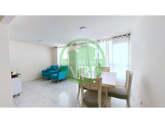 Apartamento en venta de 50m2, con vista interior, ubicado en un piso 3er (Torre 28 Apto 304), acceso por escaleras. Consta de 2 habitaciones, 2 baños, sala comedor, cocina integral y zona de lavandería. Tiene piso cerámico en todas sus zonas. El conjunto cuenta con salón social, piscina, zonas verdes, zona para niños y vigilancia privada las 24 horas. Cerca al centro comercial Único; cerca a paradas intermunicipales; Vías de acceso por la Calle 10.